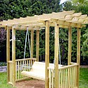 If you are thinking about having a custom designed swing or play set built for your children, then you have come to the right place. Harder's Decking INC. will provide you with a custom design swing set and play area that will encourage your children to not only enjoy the outdoors, but is a fantastic spot for exercise and imaginative thought. Also, we offer custom built wooden adult bench swings as well. They make for a wonderful addition to any porch or backyard.